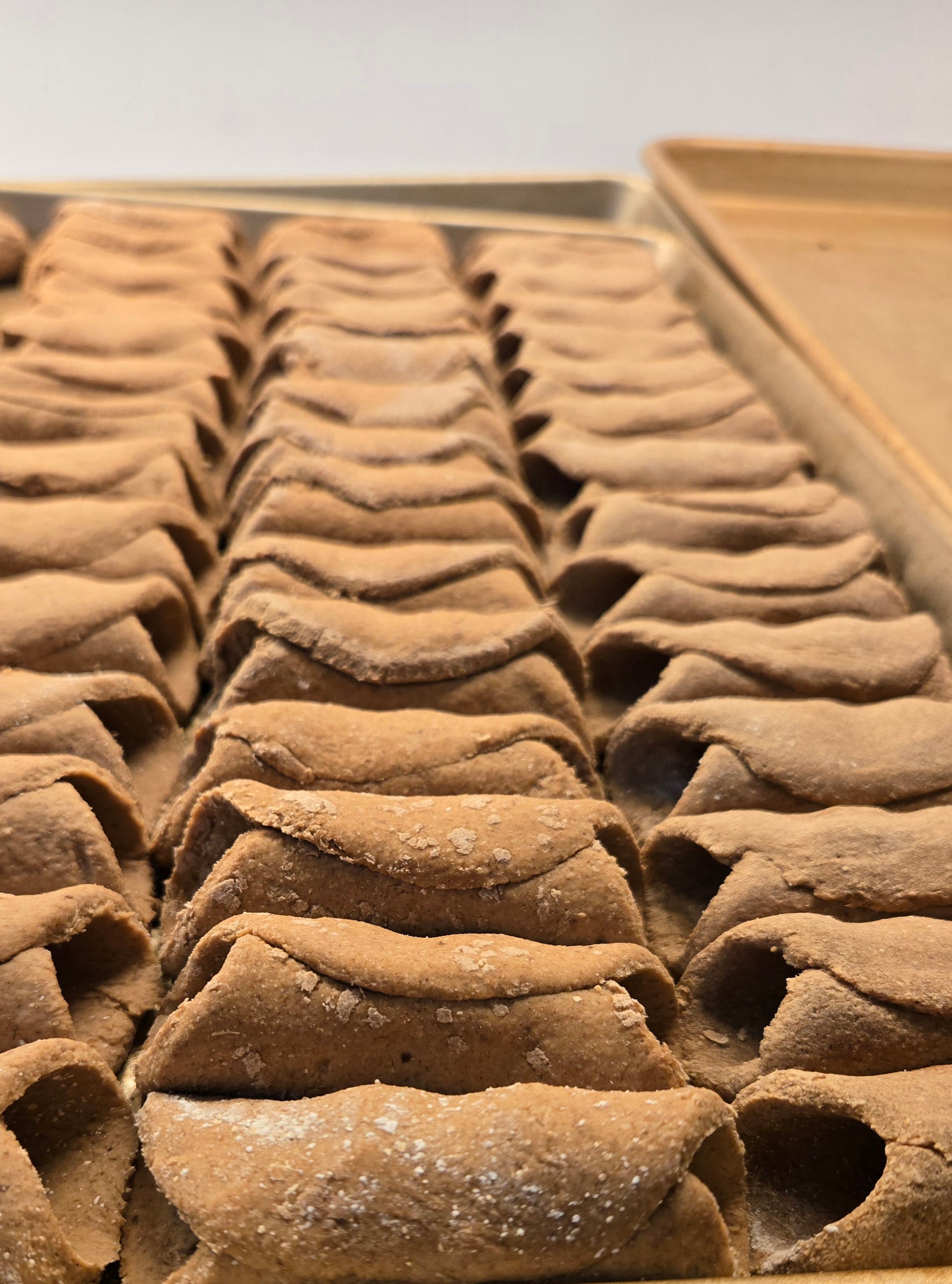 Introducing a tail-wagging treat that will make your dog's day, filled with cream cheese, and honey. These specially crafted treats offer a combination of flavours that dogs adore. With the creamy goodness of cream cheese, banana, and a touch of natural sweetness from honey, these Paw'Nolis provide a delightful and wholesome indulgence for your furry friend.